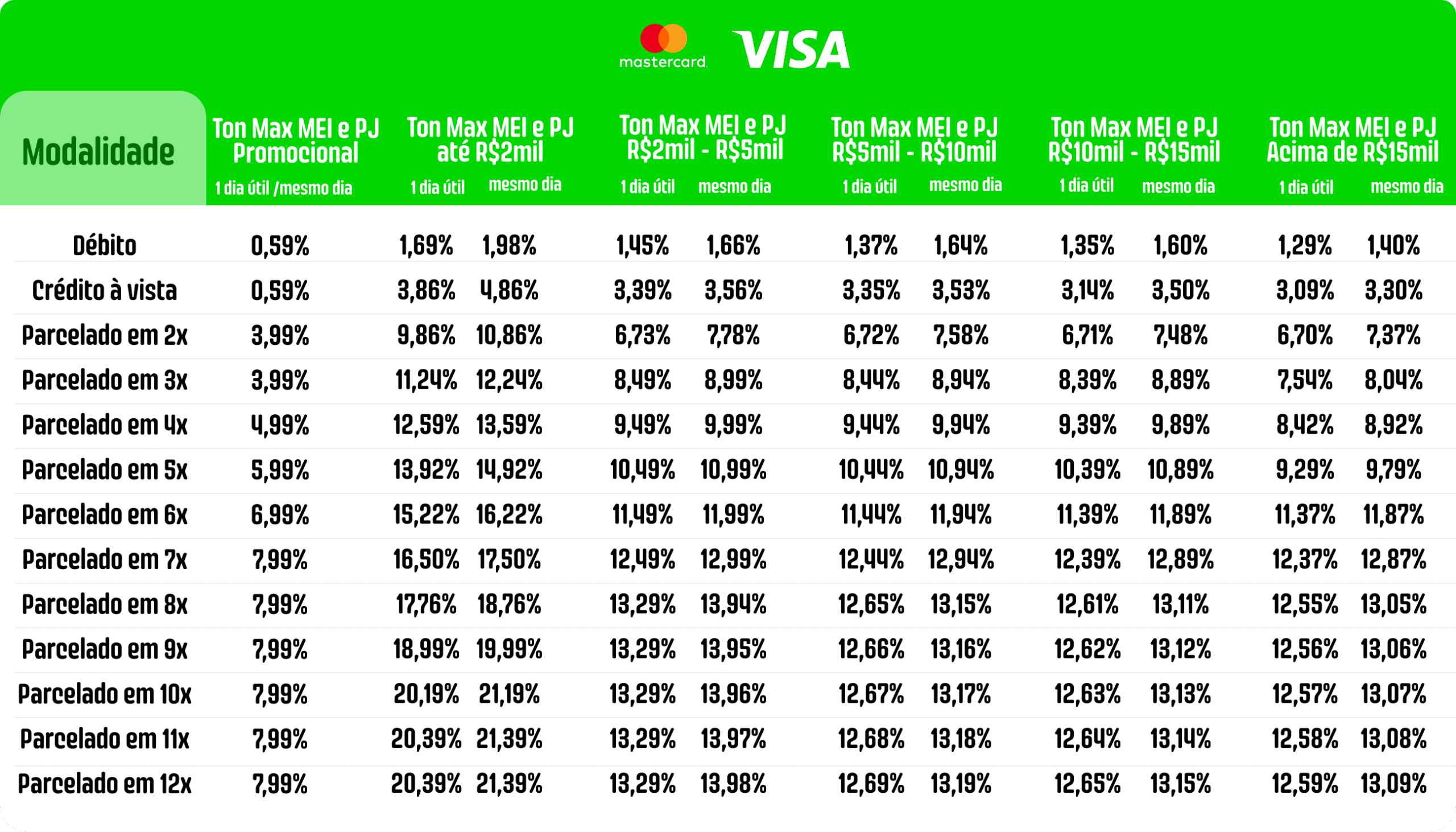 Taxas promocionais do Ton Pro são válidas apenas pra novos pedidos de máquina.